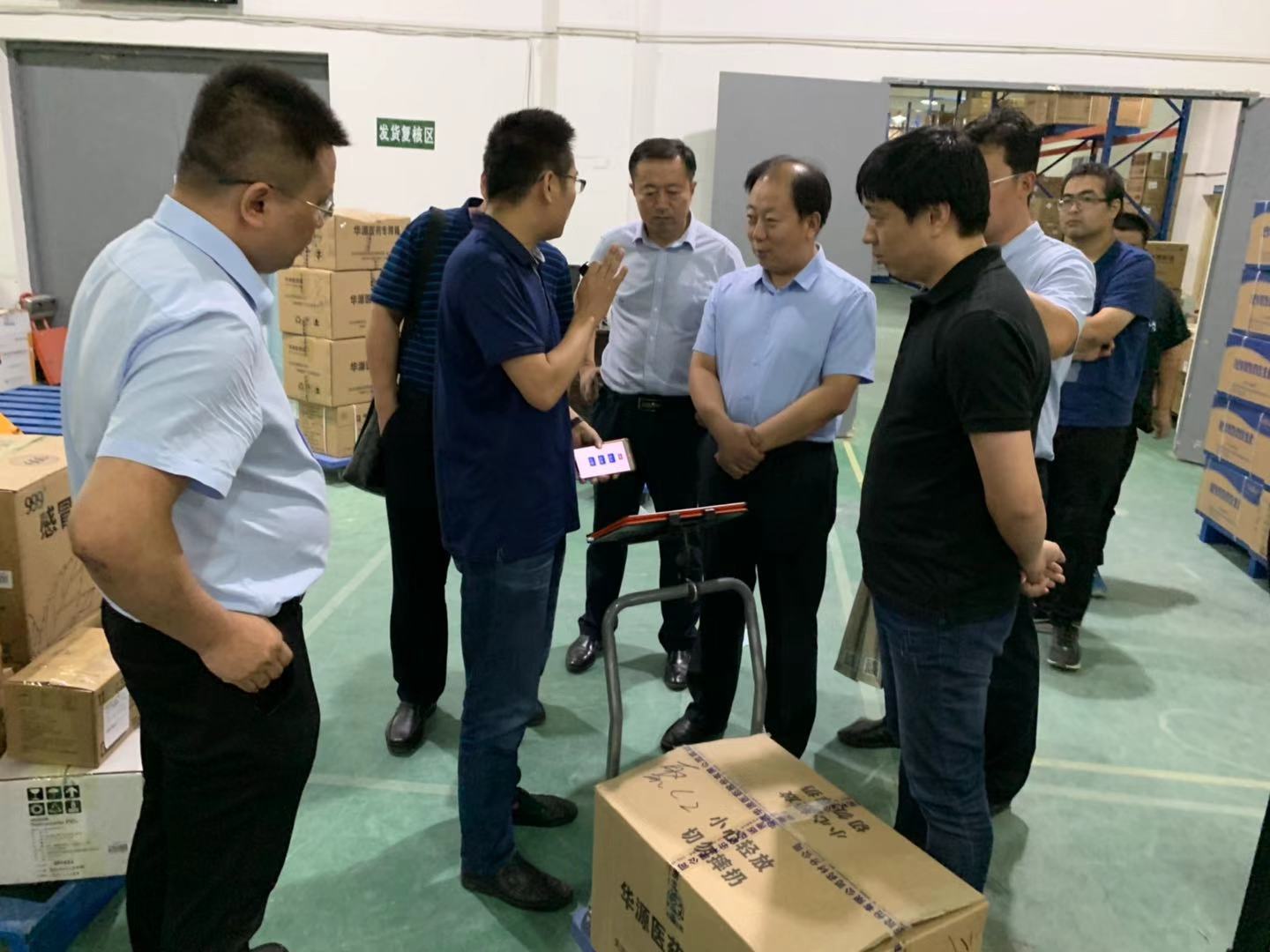 合肥医药健康产业园区物业办主任陈刚,安徽华源聚源医药有限公司副总经理赵匀峰陪同徐书记到电商平台仓库考察自动分拣系统和仓库工作流程,并对园区进行了考察,徐书记对安徽华源聚源电商能在安徽成为标杆企业给予肯定。