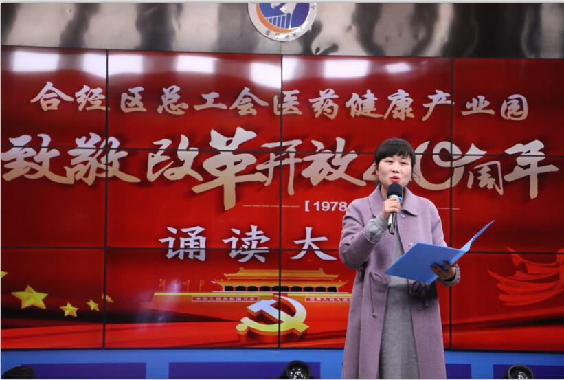 为深入学习贯彻习近平新时代中国特色社会主义思想和党的十九大精神,回顾改革开放40年来波澜壮阔的历史进程,讴歌改革开放背景下取得的辉煌成就,合肥医药健康产业园工会联合会联合园区各企业,开展致敬改革开放40周年诵读大会