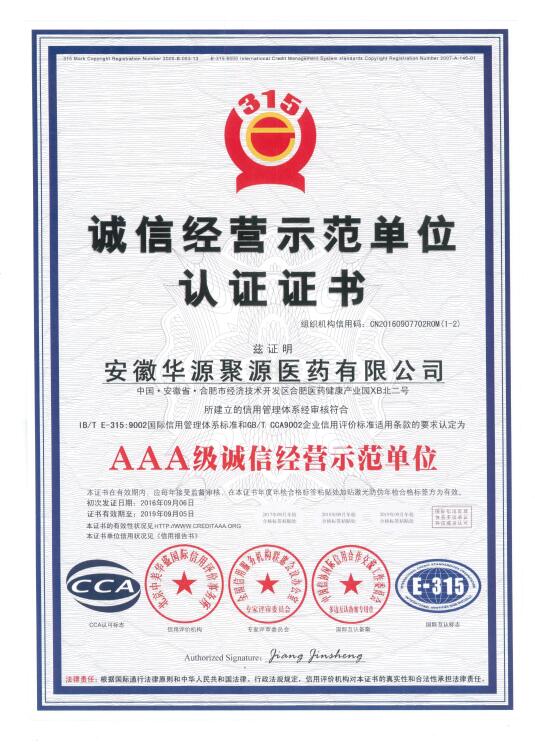 AAA级诚信经营示范单位
